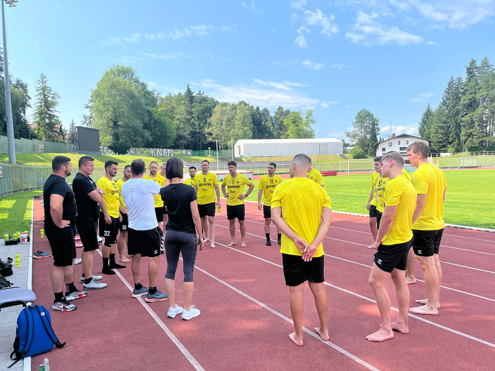 Poletnega premora je končno konec. Danes so se na Mestnem stadionu Ob jezeru prvič pred začetkom sezone 2024/25 zbrali rokometaši članskega moštva in pod budnim očesom strokovnega vodstva, kateremu bo še vedno poveljeval Zoran Jovičić opravili uvodni trening. Kljub vročini so fantje na trening prišli dobre volje in nasmejani, ter pripravljeni na nove izzive, ki jih čakajo v novi tekmovalni sezoni. Prvi cilj seveda ostaja ubranitev naslova v slovenskem državnem prvenstvu, kjer smo si lani petič v zgodovini zagotovili naslov prvaka. Drugi cilj pa bo dobra uvrstitev v evropskem tekmovanju, kjer bomo tudi letos nastopili v skupinskem delu EHF Evropske lige.